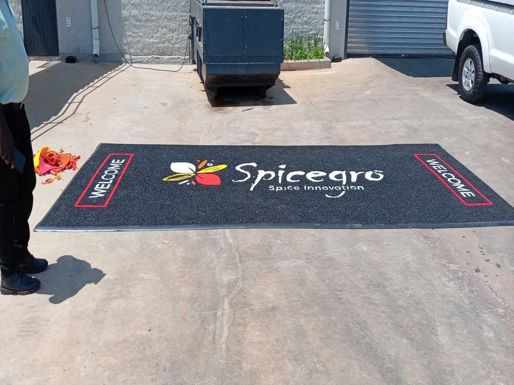 Marsec Matting are South Africa’s leading supplier of quality, heavy duty, logo mats for both commercial and industrial business use. Our custom door mat range includes indoor and outdoor logo mats that are made to your exact requirements including size, business design and colour choice. We offer free artwork visuals created prior to ordering .
